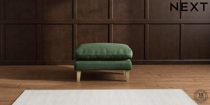7.2.10 Palermo Relaxed Sit Footstool Luxe Chenille Dark Green Tapered - Light | Made Click here to use our website with more accessibility support, for example screen readers