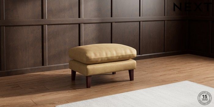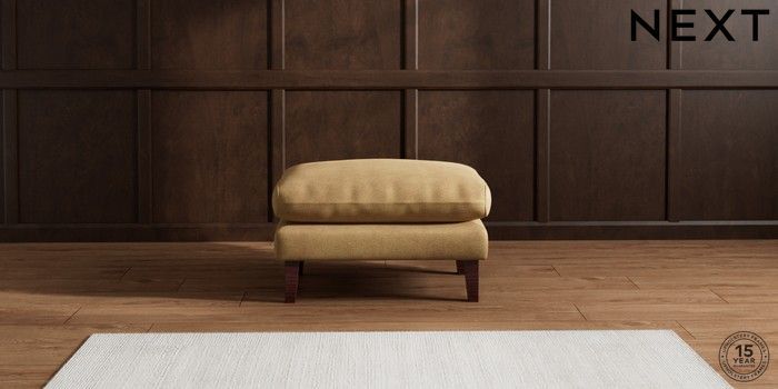 7.2.10 Palermo Relaxed Sit Footstool Luxe Chenille Honey Yellow Tapered - Dark Brown | Made Click here to use our website with more accessibility support, for example screen readers
