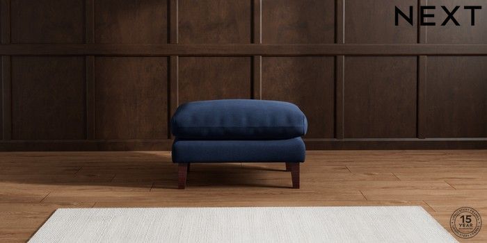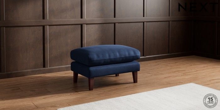 7.2.10 Palermo Relaxed Sit Footstool Luxe Chenille Navy Blue Tapered - Dark Brown | Made Click here to use our website with more accessibility support, for example screen readers