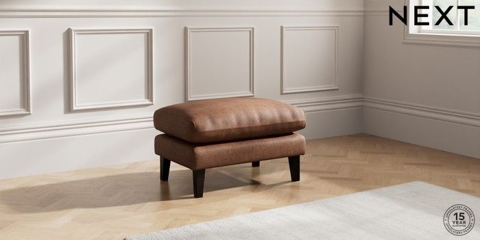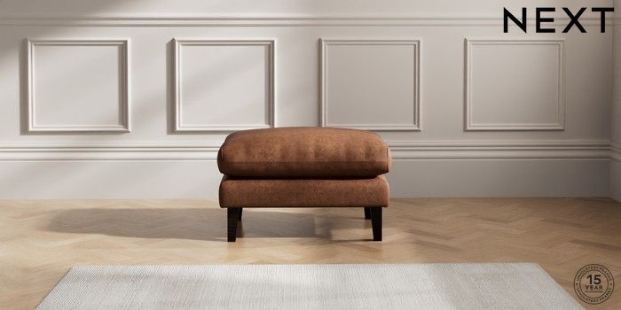 7.2.10 Palermo Relaxed Sit Footstool Monza Faux Leather Easy Clean Chestnut Brown Tapered - Dark | Made Click here to use our website with more accessibility support, for example screen readers