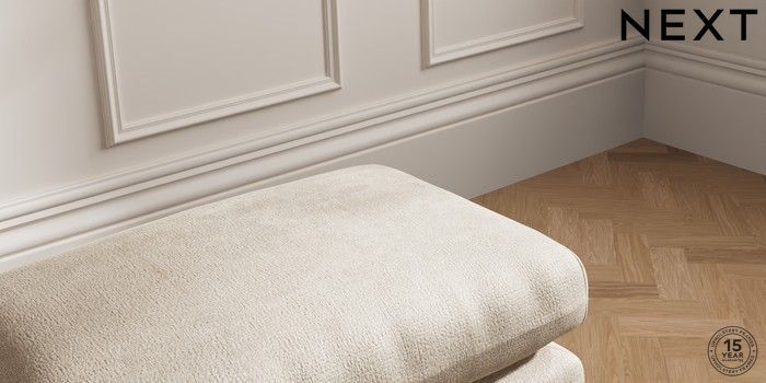7.2.10 Palermo Relaxed Sit Footstool Plush Chenille Light Natural Tapered - Dark Brown | Made Click here to use our website with more accessibility support, for example screen readers