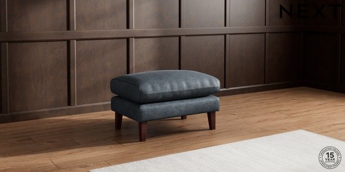 7.2.10 Palermo Relaxed Sit Footstool Plush Chenille Slate Blue Tapered - Dark Brown | Made Click here to use our website with more accessibility support, for example screen readers