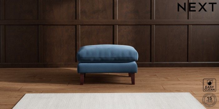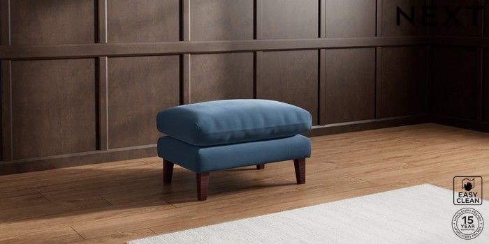 7.2.10 Palermo Relaxed Sit Footstool Plush Velvet Easy Clean Airforce Blue Tapered - Dark Brown | Made Click here to use our website with more accessibility support, for example screen readers