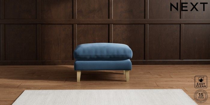 7.2.10 Palermo Relaxed Sit Footstool Plush Velvet Easy Clean Airforce Blue Tapered - Light | Made Click here to use our website with more accessibility support, for example screen readers
