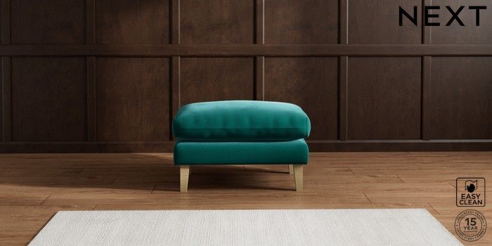 7.2.10 Palermo Relaxed Sit Footstool Plush Velvet Easy Clean Juniper Green Tapered - Light | Made Click here to use our website with more accessibility support, for example screen readers