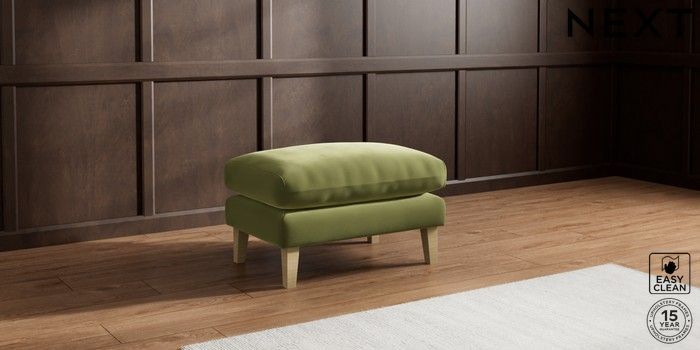 7.2.10 Palermo Relaxed Sit Footstool Plush Velvet Easy Clean Mid Olive Green Tapered - Light | Made Click here to use our website with more accessibility support, for example screen readers