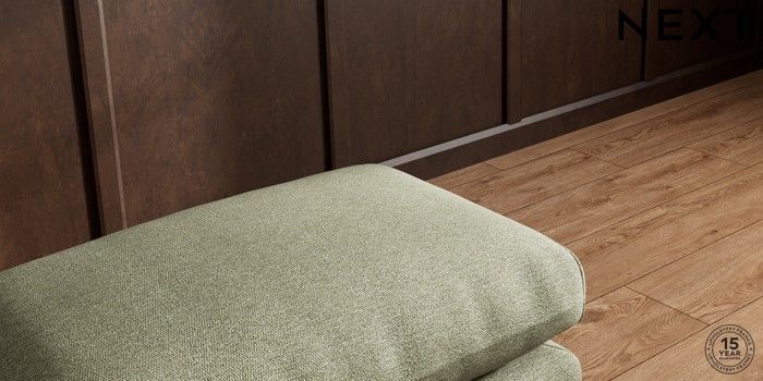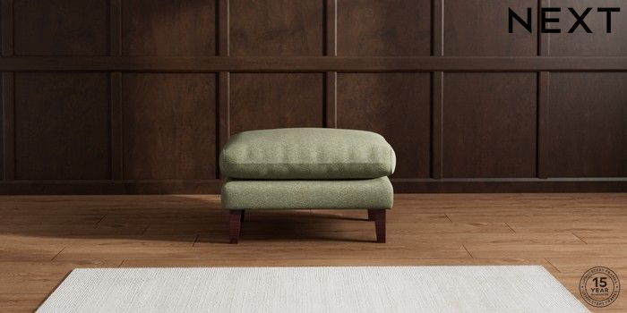 7.2.10 Palermo Relaxed Sit Footstool Tweedy Chenille Mid Moss Green Tapered - Dark Brown | Made Click here to use our website with more accessibility support, for example screen readers