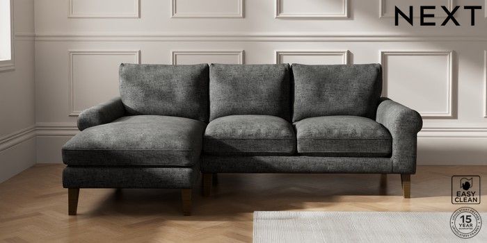 7.2.10 Palermo Relaxed Sit Medium Sofa Chaise - Left Hand Boucle Weave Easy Clean Charcoal Grey Tapered - Mid | Made Click here to use our website with more accessibility support, for example screen readers