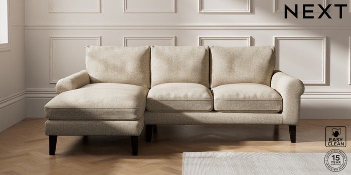 7.2.10 Palermo Relaxed Sit Medium Sofa Chaise - Left Hand Boucle Weave Easy Clean Dark Natural Tapered - Dark | Made Click here to use our website with more accessibility support, for example screen readers