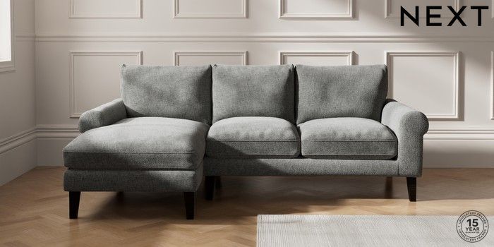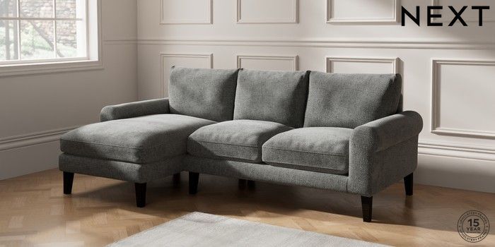 7.2.10 Palermo Relaxed Sit Medium Sofa Chaise - Left Hand Chunky Chenille Dark Grey Tapered - Dark | Made Click here to use our website with more accessibility support, for example screen readers