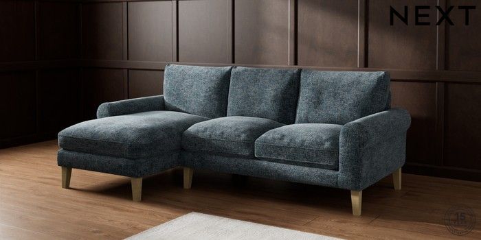 7.2.10 Palermo Relaxed Sit Medium Sofa Chaise - Left Hand Chunky Chenille Dark Navy Blue Tapered - Light | Made Click here to use our website with more accessibility support, for example screen readers