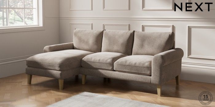 7.2.10 Palermo Relaxed Sit Medium Sofa Chaise - Left Hand Chunky Chenille Light Dove Tapered - Light | Made Click here to use our website with more accessibility support, for example screen readers