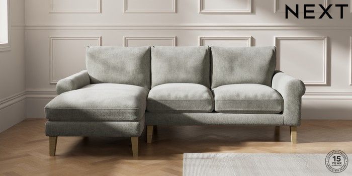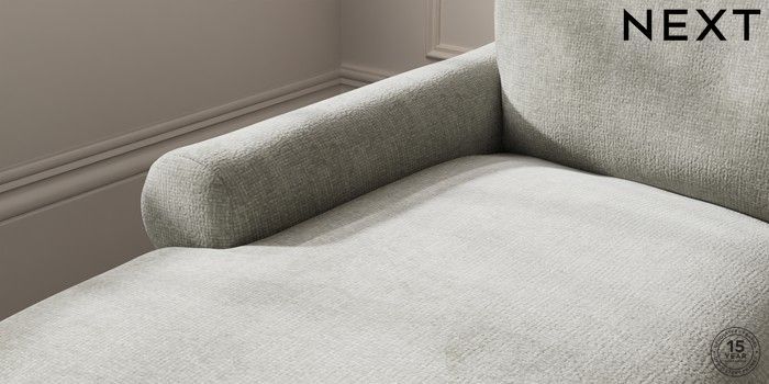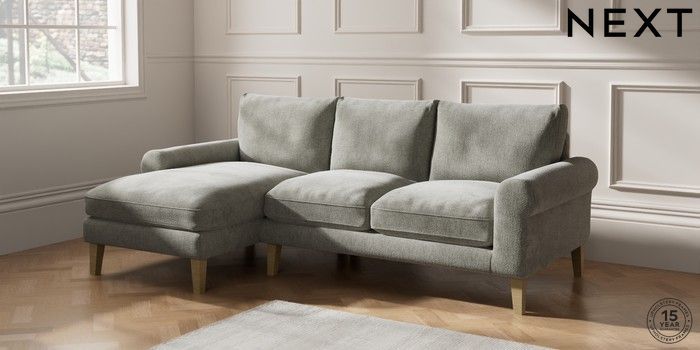 7.2.10 Palermo Relaxed Sit Medium Sofa Chaise - Left Hand Chunky Chenille Light Grey Tapered - Light | Made Click here to use our website with more accessibility support, for example screen readers