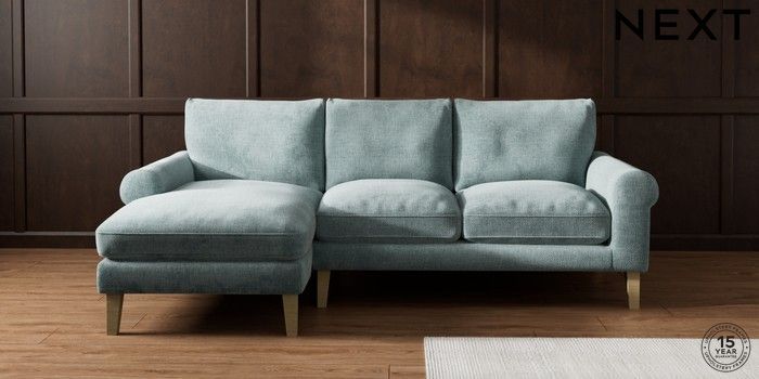 7.2.10 Palermo Relaxed Sit Medium Sofa Chaise - Left Hand Chunky Chenille Light Teal Green Tapered - Light | Made Click here to use our website with more accessibility support, for example screen readers