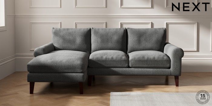 7.2.10 Palermo Relaxed Sit Medium Sofa Chaise - Left Hand Chunky Texture Dark Grey Tapered - Dark Brown | Made Click here to use our website with more accessibility support, for example screen readers