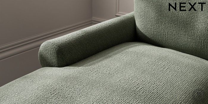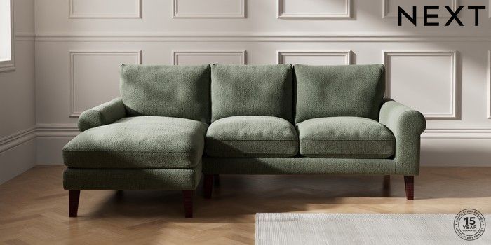 7.2.10 Palermo Relaxed Sit Medium Sofa Chaise - Left Hand Chunky Texture Mid Forest Green Tapered - Dark Brown | Made Click here to use our website with more accessibility support, for example screen readers
