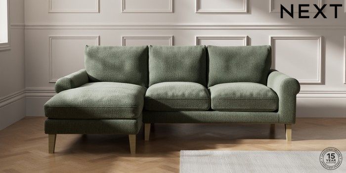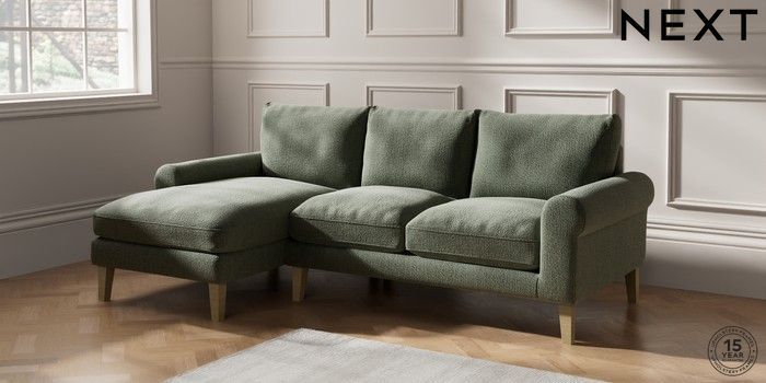 7.2.10 Palermo Relaxed Sit Medium Sofa Chaise - Left Hand Chunky Texture Mid Forest Green Tapered - Light | Made Click here to use our website with more accessibility support, for example screen readers
