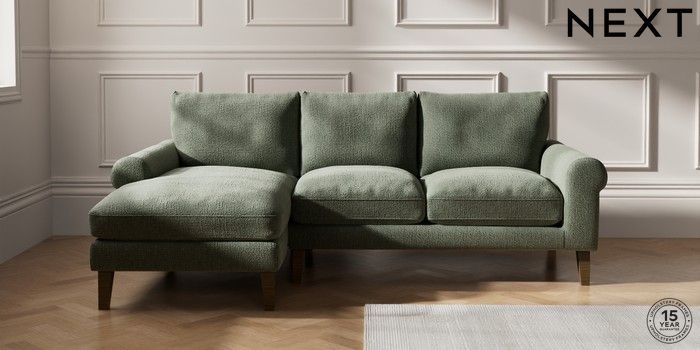 7.2.10 Palermo Relaxed Sit Medium Sofa Chaise - Left Hand Chunky Texture Mid Forest Green Tapered - Mid | Made Click here to use our website with more accessibility support, for example screen readers