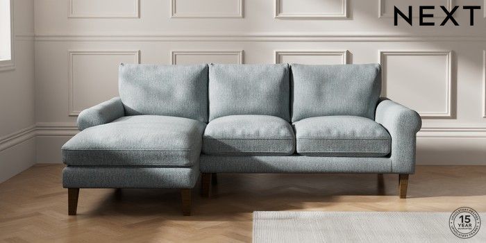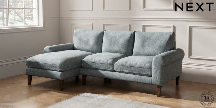7.2.10 Palermo Relaxed Sit Medium Sofa Chaise - Left Hand Chunky Weave Mid Blue Tapered - Mid | Made Click here to use our website with more accessibility support, for example screen readers