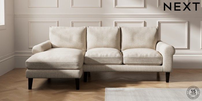 7.2.10 Palermo Relaxed Sit Medium Sofa Chaise - Left Hand Chunky Weave Mid Natural Tapered - Dark | Made Click here to use our website with more accessibility support, for example screen readers
