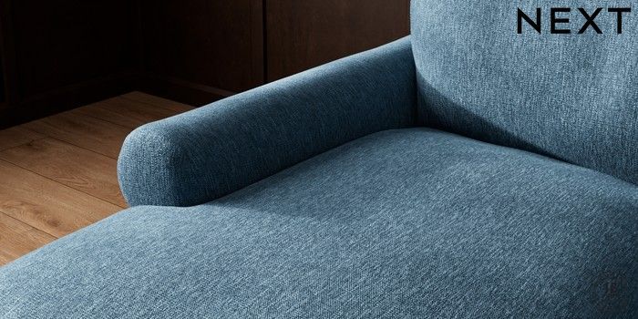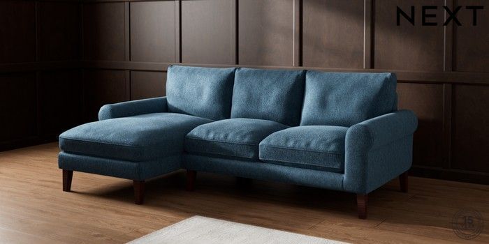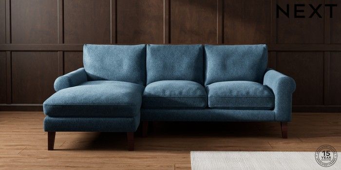 7.2.10 Palermo Relaxed Sit Medium Sofa Chaise - Left Hand Cotswold Chenille Dark Blue Tapered - Dark Brown | Made Click here to use our website with more accessibility support, for example screen readers