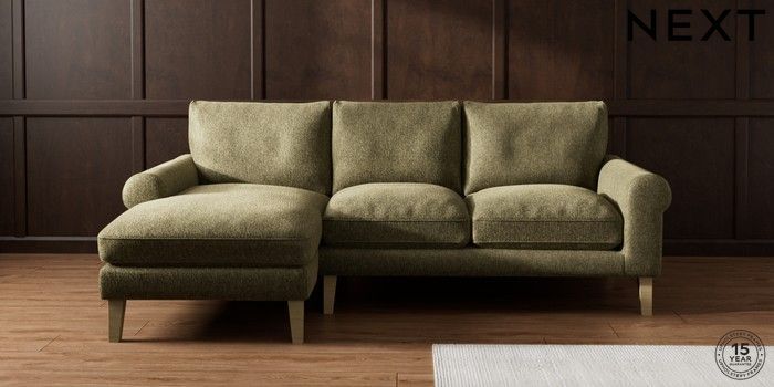 7.2.10 Palermo Relaxed Sit Medium Sofa Chaise - Left Hand Cotswold Chenille Dark Green Tapered - Light | Made Click here to use our website with more accessibility support, for example screen readers