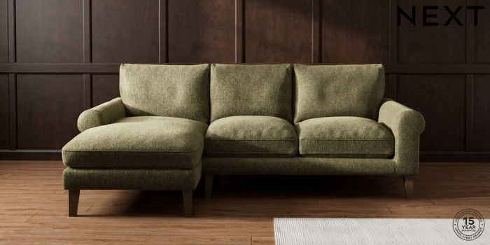 7.2.10 Palermo Relaxed Sit Medium Sofa Chaise - Left Hand Cotswold Chenille Dark Green Tapered - Mid | Made Click here to use our website with more accessibility support, for example screen readers