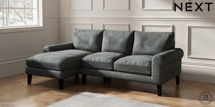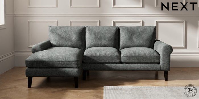 7.2.10 Palermo Relaxed Sit Medium Sofa Chaise - Left Hand Cotswold Chenille Dark Grey Tapered - Dark | Made Click here to use our website with more accessibility support, for example screen readers