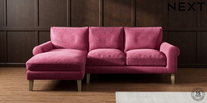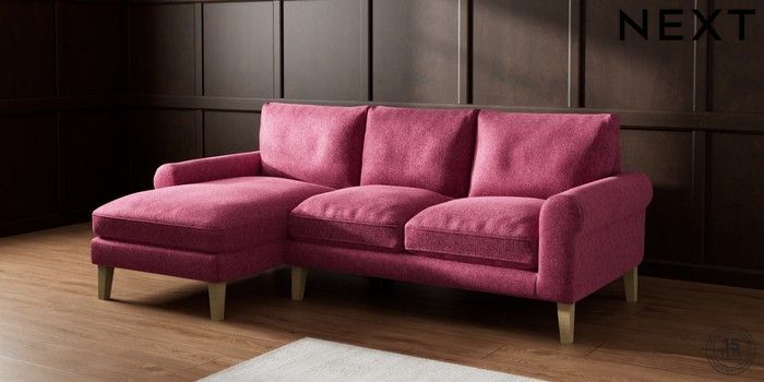 7.2.10 Palermo Relaxed Sit Medium Sofa Chaise - Left Hand Cotswold Chenille Dark Raspberry Pink Tapered - Light | Made Click here to use our website with more accessibility support, for example screen readers