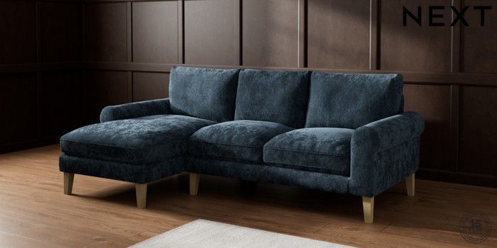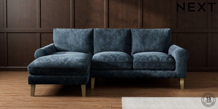 7.2.10 Palermo Relaxed Sit Medium Sofa Chaise - Left Hand Distressed Velour Midnight Blue Tapered - Light | Made Click here to use our website with more accessibility support, for example screen readers