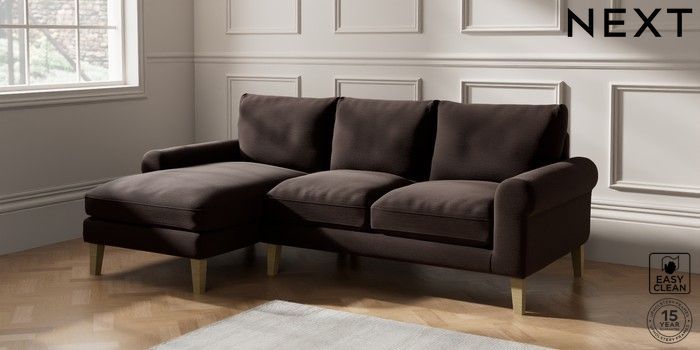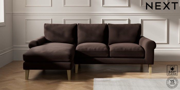 7.2.10 Palermo Relaxed Sit Medium Sofa Chaise - Left Hand Fine Chenille Easy Clean Chocolate Brown Tapered - Light | Made Click here to use our website with more accessibility support, for example screen readers