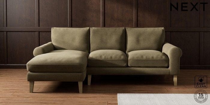 7.2.10 Palermo Relaxed Sit Medium Sofa Chaise - Left Hand Fine Chenille Easy Clean Dark Moss Green Tapered - Light | Made Click here to use our website with more accessibility support, for example screen readers