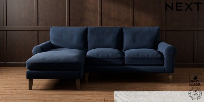 7.2.10 Palermo Relaxed Sit Medium Sofa Chaise - Left Hand Fine Chenille Easy Clean Dark Navy Blue Tapered - Mid | Made Click here to use our website with more accessibility support, for example screen readers