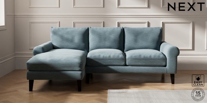 7.2.10 Palermo Relaxed Sit Medium Sofa Chaise - Left Hand Fine Chenille Easy Clean Mid Blue Tapered - Dark | Made Click here to use our website with more accessibility support, for example screen readers