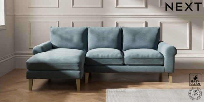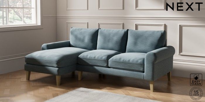 7.2.10 Palermo Relaxed Sit Medium Sofa Chaise - Left Hand Fine Chenille Easy Clean Mid Blue Tapered - Light | Made Click here to use our website with more accessibility support, for example screen readers