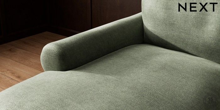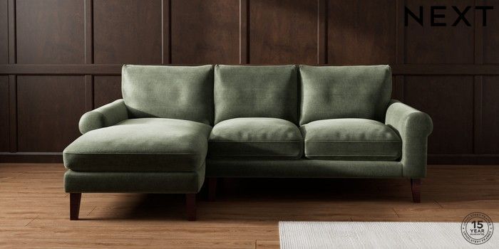 7.2.10 Palermo Relaxed Sit Medium Sofa Chaise - Left Hand Luxe Chenille Mid Green Tapered - Dark Brown | Made Click here to use our website with more accessibility support, for example screen readers