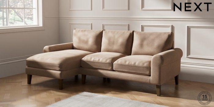 7.2.10 Palermo Relaxed Sit Medium Sofa Chaise - Left Hand Luxe Chenille Mid Natural Tapered - Mid | Made Click here to use our website with more accessibility support, for example screen readers
