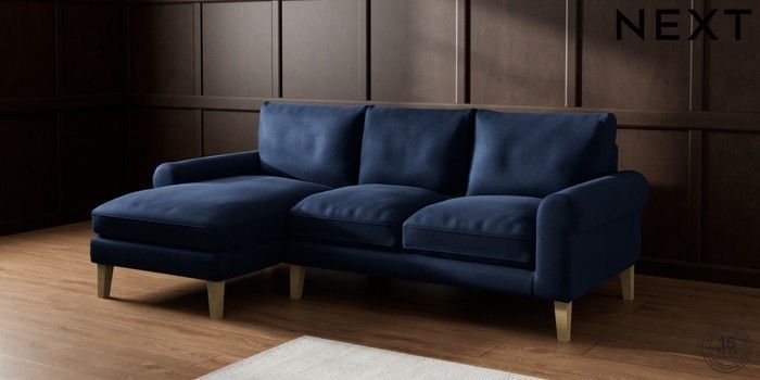 7.2.10 Palermo Relaxed Sit Medium Sofa Chaise - Left Hand Luxe Chenille Navy Blue Tapered - Light | Made Click here to use our website with more accessibility support, for example screen readers