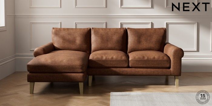 7.2.10 Palermo Relaxed Sit Medium Sofa Chaise - Left Hand Monza Faux Leather Easy Clean Chestnut Brown Tapered - Light | Made Click here to use our website with more accessibility support, for example screen readers