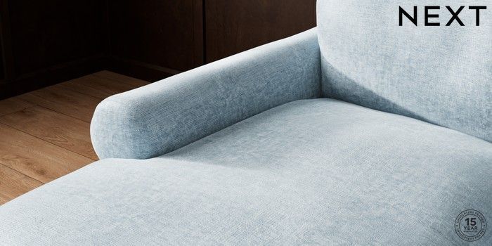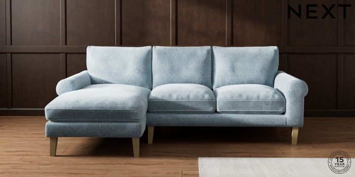 7.2.10 Palermo Relaxed Sit Medium Sofa Chaise - Left Hand Plush Chenille Light Blue Tapered - Light | Made Click here to use our website with more accessibility support, for example screen readers