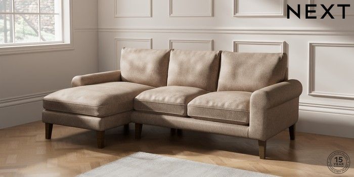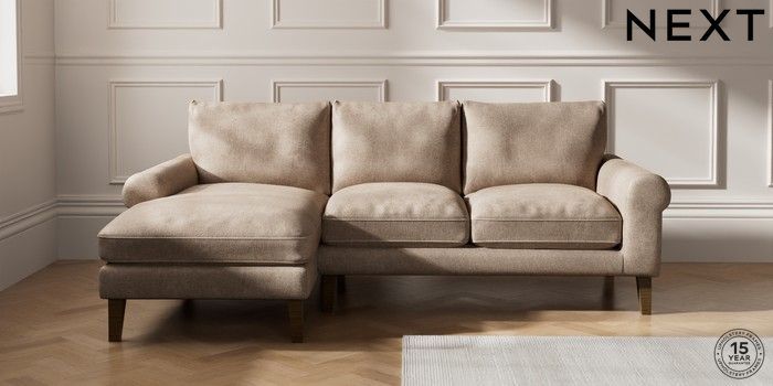 7.2.10 Palermo Relaxed Sit Medium Sofa Chaise - Left Hand Plush Chenille Mid Natural Tapered - Mid | Made Click here to use our website with more accessibility support, for example screen readers