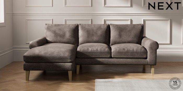 7.2.10 Palermo Relaxed Sit Medium Sofa Chaise - Left Hand Plush Chenille Mink Brown Tapered - Light | Made Click here to use our website with more accessibility support, for example screen readers