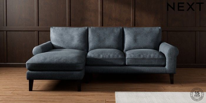 7.2.10 Palermo Relaxed Sit Medium Sofa Chaise - Left Hand Plush Chenille Slate Blue Tapered - Dark | Made Click here to use our website with more accessibility support, for example screen readers