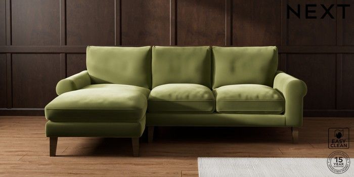 7.2.10 Palermo Relaxed Sit Medium Sofa Chaise - Left Hand Plush Velvet Easy Clean Mid Olive Green Tapered - Mid | Made Click here to use our website with more accessibility support, for example screen readers