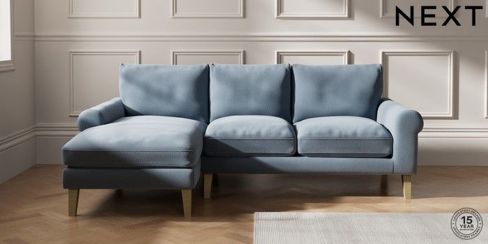 7.2.10 Palermo Relaxed Sit Medium Sofa Chaise - Left Hand Relaxed Linen Look Mid Blue Tapered - Light | Made Click here to use our website with more accessibility support, for example screen readers