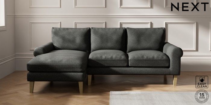 7.2.10 Palermo Relaxed Sit Medium Sofa Chaise - Left Hand Tweedy Blend Easy Clean Charcoal Grey Tapered - Light | Made Click here to use our website with more accessibility support, for example screen readers