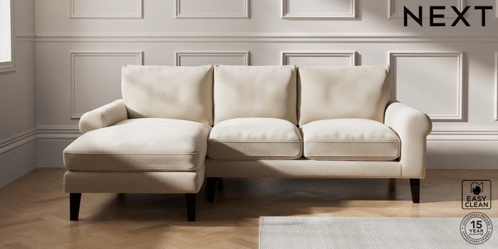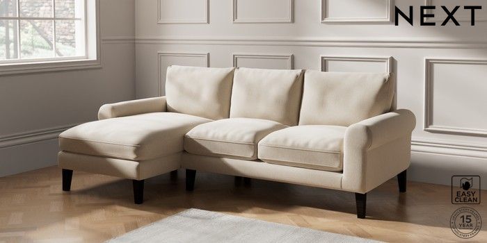 7.2.10 Palermo Relaxed Sit Medium Sofa Chaise - Left Hand Tweedy Blend Easy Clean Oyster Tapered - Dark | Made Click here to use our website with more accessibility support, for example screen readers