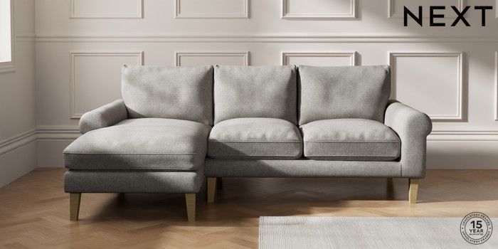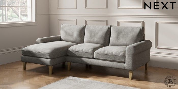 7.2.10 Palermo Relaxed Sit Medium Sofa Chaise - Left Hand Tweedy Chenille Mid Grey Tapered - Light | Made Click here to use our website with more accessibility support, for example screen readers
