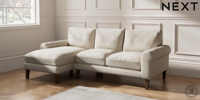 7.2.10 Palermo Relaxed Sit Medium Sofa Chaise - Left Hand Tweedy Chenille Oyster Tapered - Mid | Made Click here to use our website with more accessibility support, for example screen readers