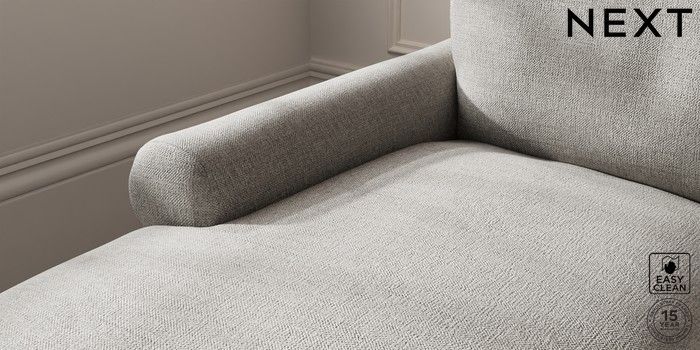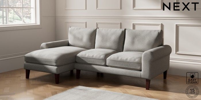 7.2.10 Palermo Relaxed Sit Medium Sofa Chaise - Left Hand Woven Chenille Easy Clean Light Grey Tapered - Dark Brown | Made Click here to use our website with more accessibility support, for example screen readers